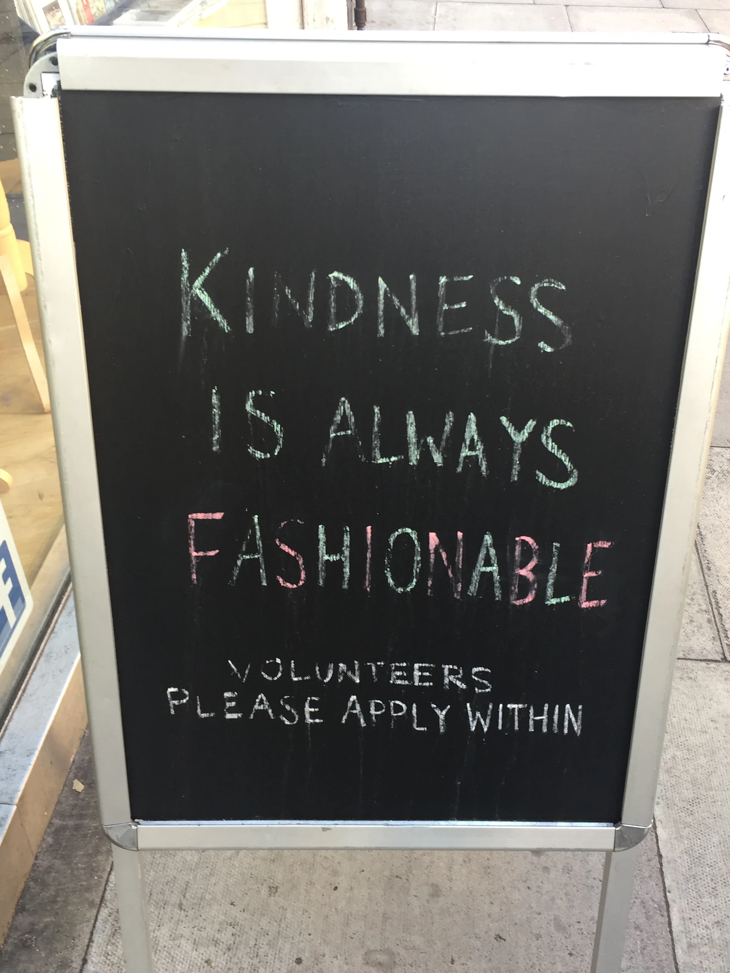 I saw this sign today outside of the Mind charity shop on Fulham Road