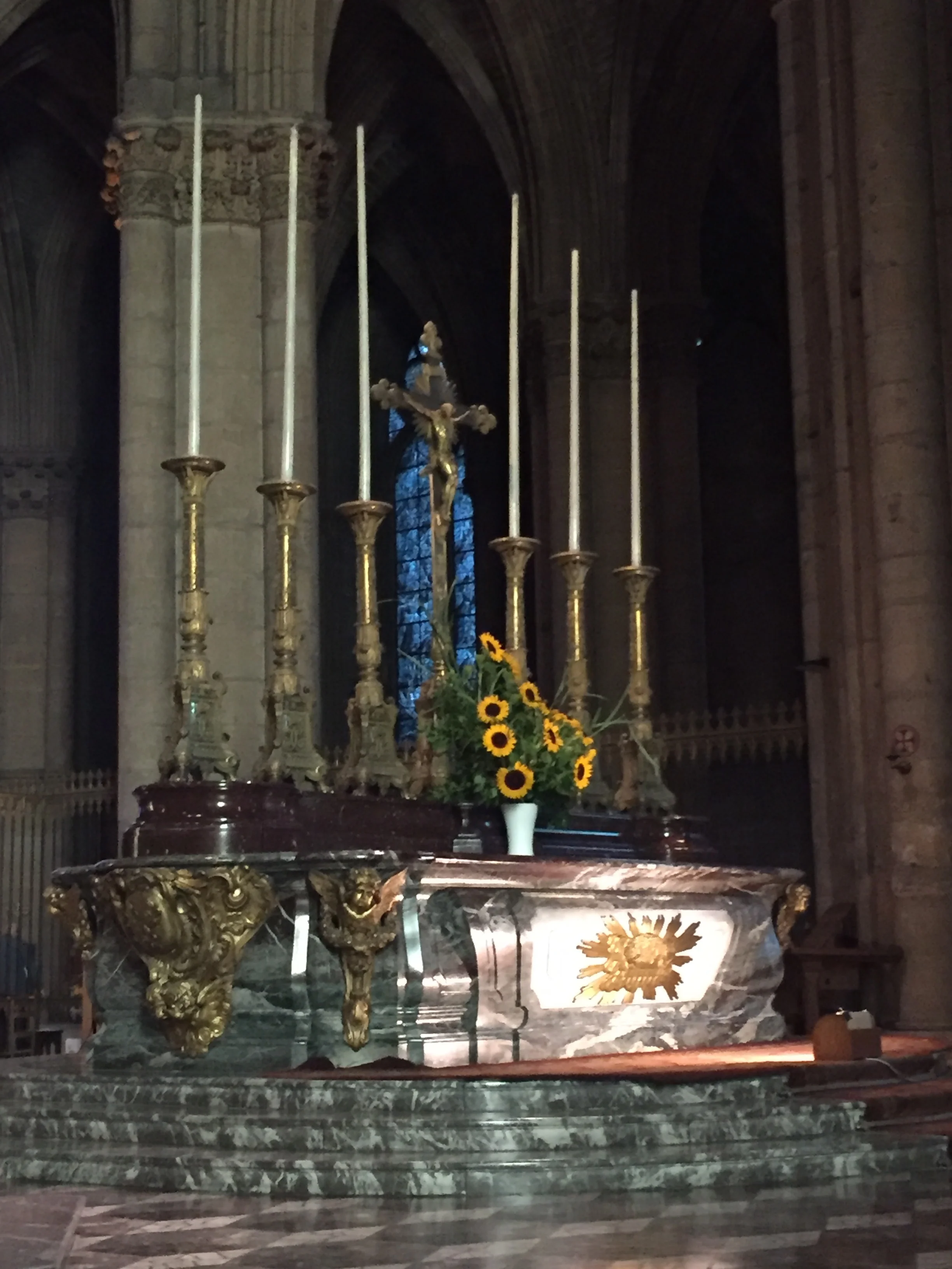 I've never seen sunflowers in a church, until we went to the Reims cathedral a few weeks ago for a beautiful mass and there she was, Olivia saying hello.
